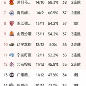 北京时间3月11日,今晚的CBA常规赛第24轮重燃战火,一共进行了8场比赛,随着广东客场80-82憾负新疆,所有的比赛结...